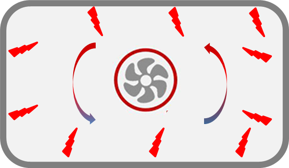 - soit une fonction « chaleur tournante », (le ventilateur est situé derrière une résistance au fond du four, et fait circuler de l’air chauffé par la résistance).