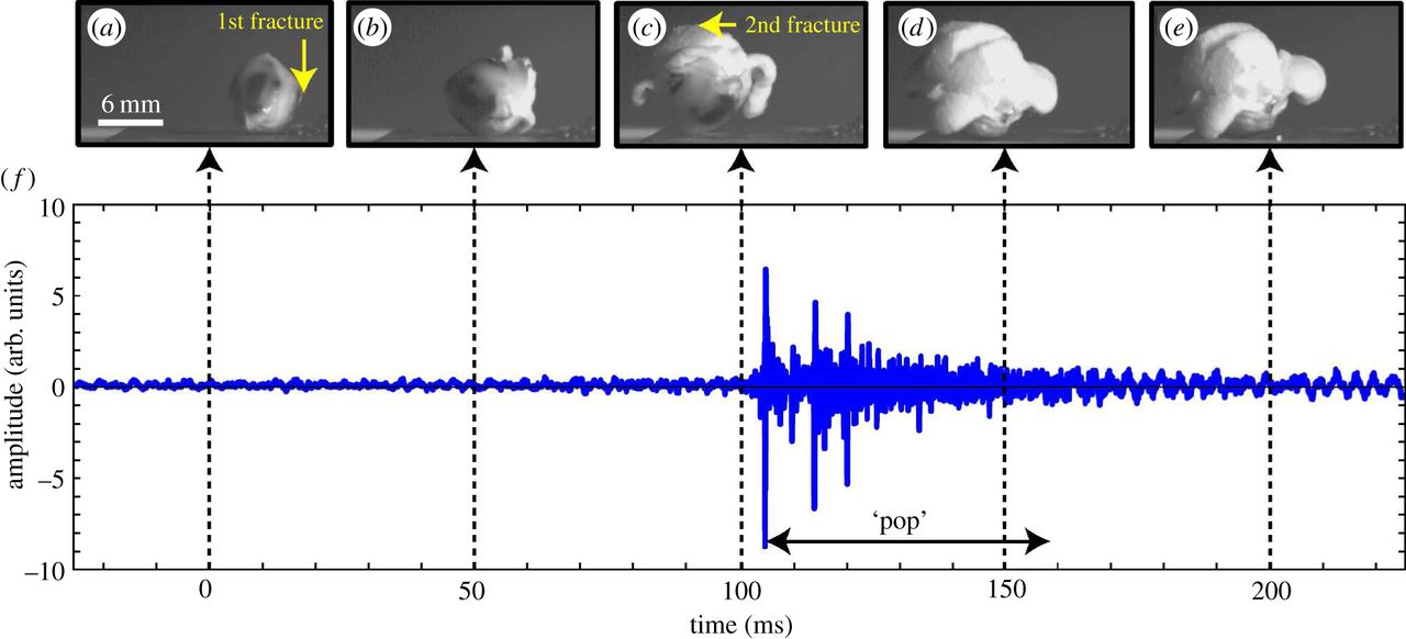 Le bruit est dû en fait à la libération de la vapeur lors de l’éclatement du grain, comme quand on ouvre une bouteille de champagne.