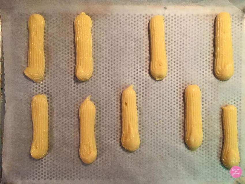 C’est pour cela qu’il est recommandé d’utiliser des douilles cannelés pour les éclairs. Sinon, le dos d’une fourchette trempée dans de l’eau fera l’affaire !